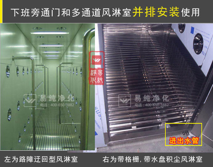 4、風(fēng)淋室為單向通道進(jìn),旁邊設(shè)置下班通道門;