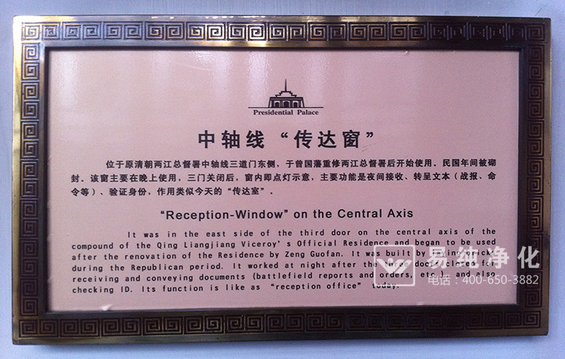 進入府邸之后,其它歷史古跡自然引起筆者深厚的探究興趣,可能是因為筆者是從事潔凈室無塵車間建設(shè)行業(yè),尤其對類似于現(xiàn)代潔凈室相關(guān)的設(shè)備特別感興趣。當(dāng)時因看到一個類似于今天的傳遞窗,特拍照下來,與諸位從業(yè)人士共享。此傳遞窗當(dāng)時稱之為傳達窗,意為傳達室,傳遞聲音和文件的窗口,現(xiàn)如今的凈化室中,稱之為傳遞窗,原先的傳遞窗也是為兩道門,只是不具備今天的傳遞窗應(yīng)用了電子控制的互鎖。那時的門衛(wèi)和守兵如果只能靠手動來控制傳遞窗的門栓了。